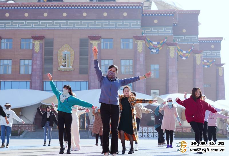 迪慶日報社婦女同胞跳起歡快的廣場舞慶?!叭恕眿D女節(jié)