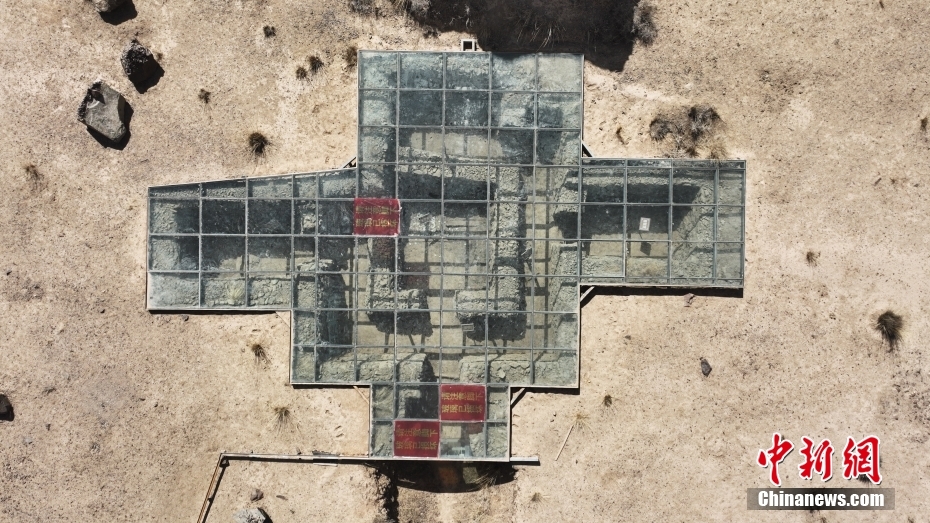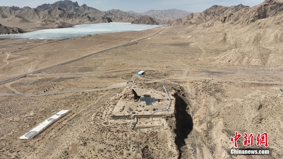 圖為3月18日,航拍青海省海西州都蘭縣熱水墓群一號(hào)大墓。(無(wú)人機(jī)照片)中新社記者 馬銘言 攝