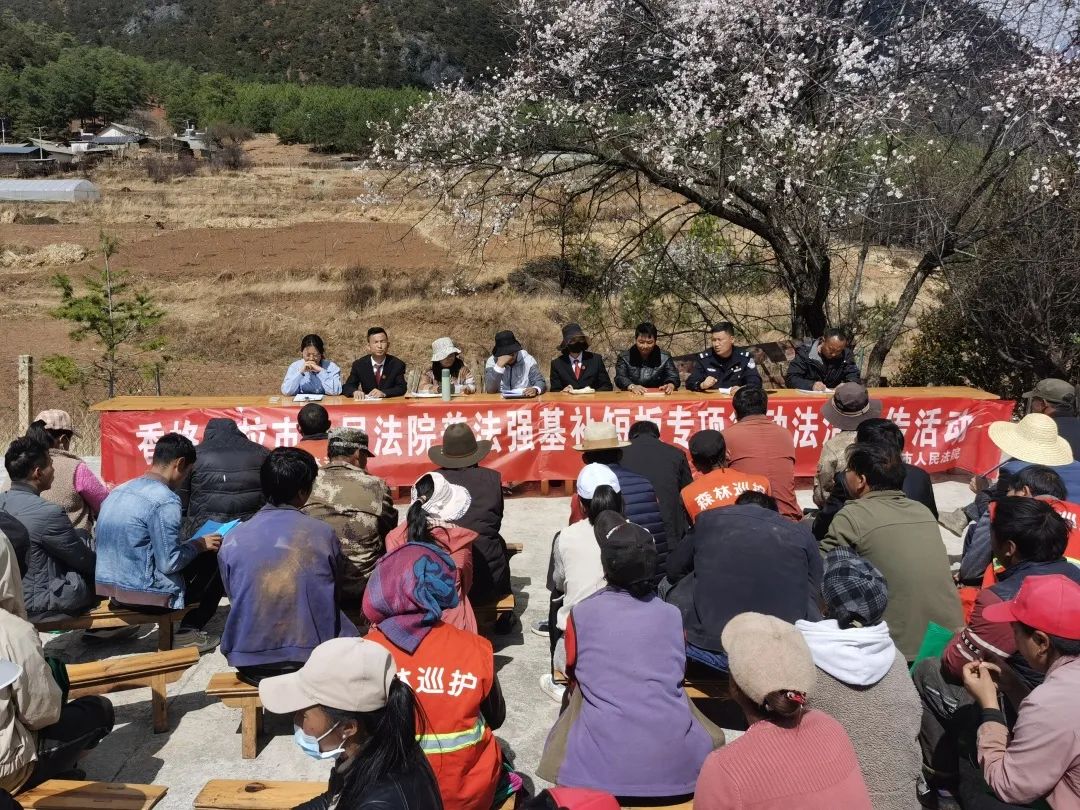 3月14日,香格里拉市人民法院組織普法小分隊(duì)聯(lián)合洛吉鄉(xiāng)派出所、駐村干部、村兩委深入九龍村開展普法強(qiáng)基補(bǔ)短板專項(xiàng)活動(dòng)。[詳細(xì)]