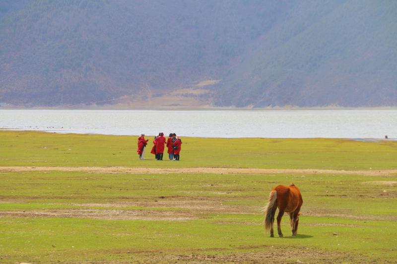 此時(shí)的納帕海,黑頸鶴還未離去,草色漸青,水草抽芽,鳥兒和牛羊悠閑覓食,這就是高原上的春天!