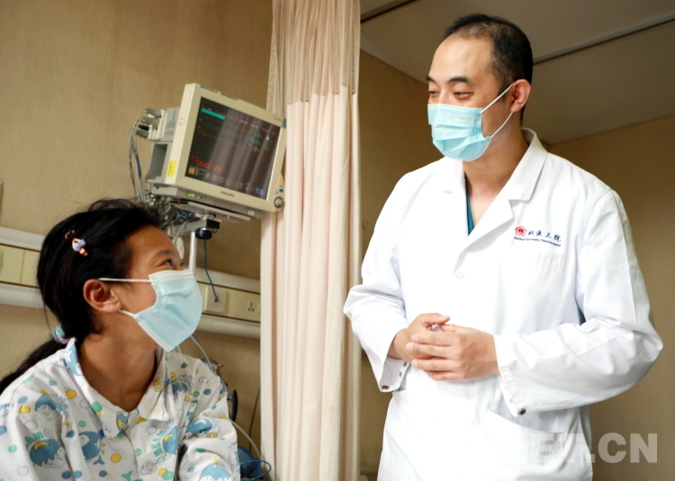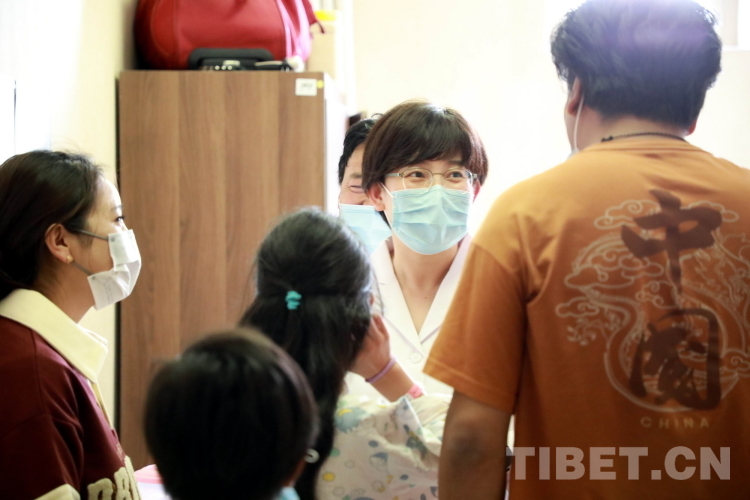 圖為北醫(yī)三院心臟外科主任醫(yī)師、副主任張喆教授手術(shù)前到病房與來(lái)自青海省果洛藏族自治州的先心病患兒溝通 攝影:劉莉