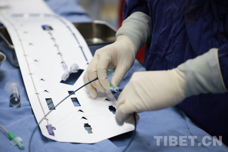 圖為北醫(yī)三院專家團(tuán)隊(duì)在為來(lái)自青海省果洛藏族自治州的先心病患兒手術(shù)時(shí)使用的直徑僅4毫米的介入導(dǎo)管 攝影:劉莉