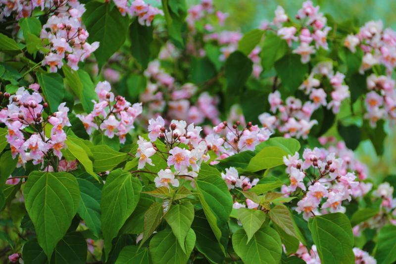楸英獨嫵媚,淡紫相參差。春季是春花爛漫的時節(jié),一花落盡又有一花開,在迪慶香格里拉經(jīng)濟開發(fā)區(qū),楸樹正迎來繁花期,一樹樹楸花簇擁綻放,隨風搖曳,美不勝收。