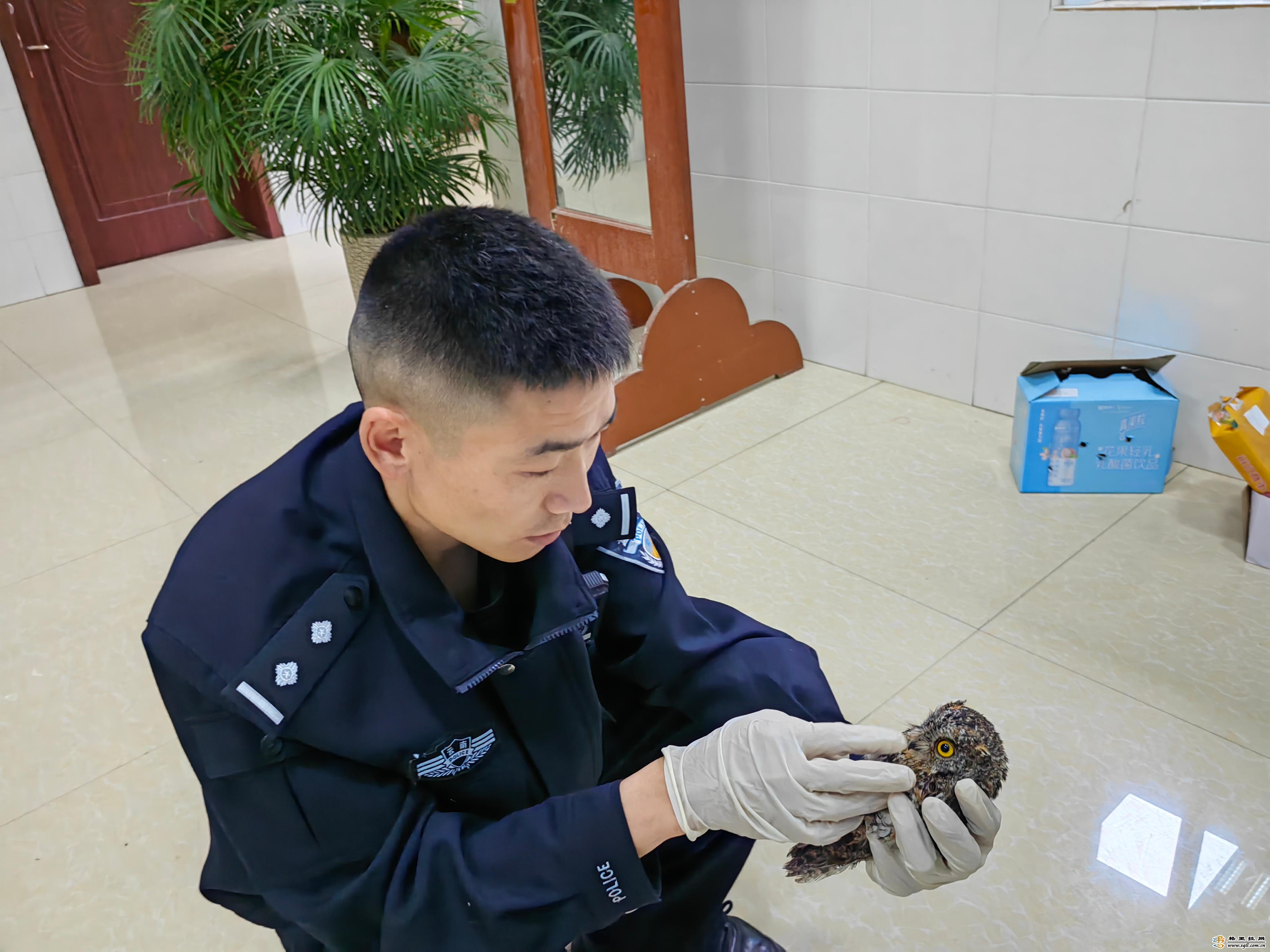 近日,維西縣公安局森警大隊民警接到群眾報警稱:“在興維大道錦盛小區(qū)發(fā)現(xiàn)一只受傷的貓頭鷹,請求森警大隊民警前往救助”。民警趕到現(xiàn)場時,熱心群眾已經將貓頭鷹放在一個紙盒里,該貓頭鷹全長約20厘米,身上部分羽毛是濕的。