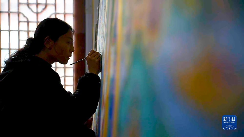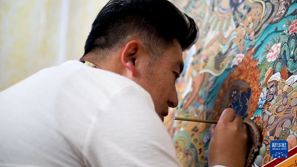 打磨布面、研制畫料、著色、暈染、勾線……唐卡創(chuàng)作的每一個環(huán)節(jié)都考驗著畫師的專注力和耐力。