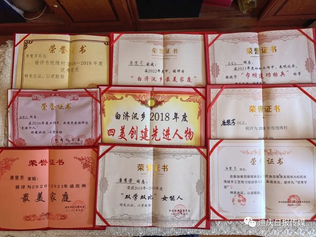 唐慧芳孝老愛(ài)親的精神不僅讓自己的公公婆婆能夠安享晚年幸福生活,也用實(shí)際行動(dòng)感染了晚輩。她的家庭多次被州婦聯(lián)評(píng)定為“最美家庭”,她多次被縣、鄉(xiāng)、村評(píng)定為“最美人物”“雙學(xué)雙比”女能人、“優(yōu)秀黨員”“巾幗建功標(biāo)兵”“先進(jìn)個(gè)人”。她用她的樸實(shí)真誠(chéng)詮釋著中華兒女尊老愛(ài)老、孝老愛(ài)親的優(yōu)秀品質(zhì),她用她的無(wú)私奉獻(xiàn)踐行了一名共產(chǎn)黨員甘當(dāng)群眾的“貼心人”的莊嚴(yán)承諾!