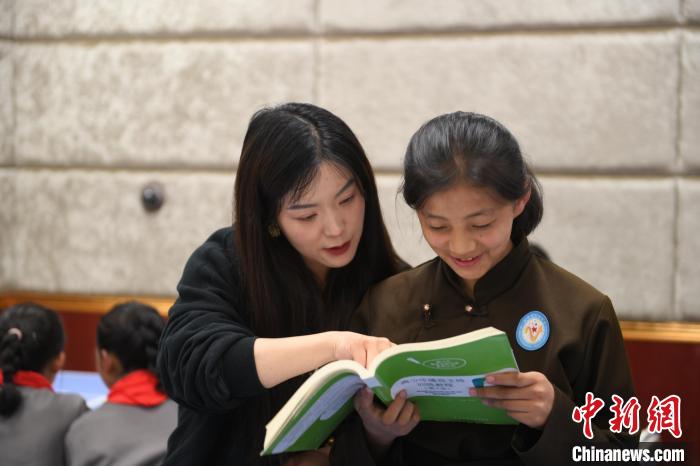 5月17日,在學(xué)校播音主持社團(tuán)課堂上,歐保瑪在老師的指導(dǎo)下進(jìn)行朗誦練習(xí)。中新社記者 戴文昌 攝
