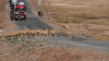 藏羚羊“過馬路”,車輛請注意!