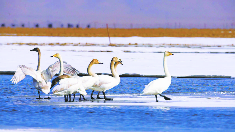 站在新搭建的木棧道上遠(yuǎn)眺四周,水系、灘涂、水生植物等生態(tài)景觀類型豐富,青海湖碧波蕩漾,引來(lái)飛鳥翔集,處處透露著原生態(tài)之美,宛如人間仙境。