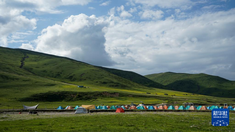 阿壩州紅原縣俄么塘花海景區(qū)內(nèi)的露營(yíng)營(yíng)地。新華社記者 尚文意 攝