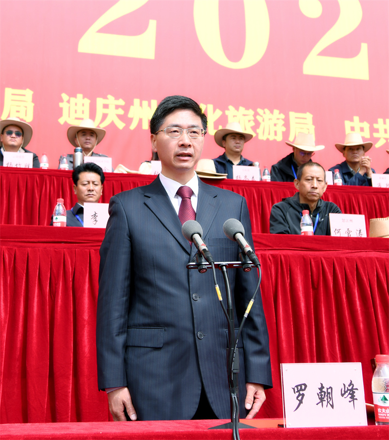 州委書記羅朝峰宣布迪慶·香格里拉2023年端午賽馬節(jié)開幕。