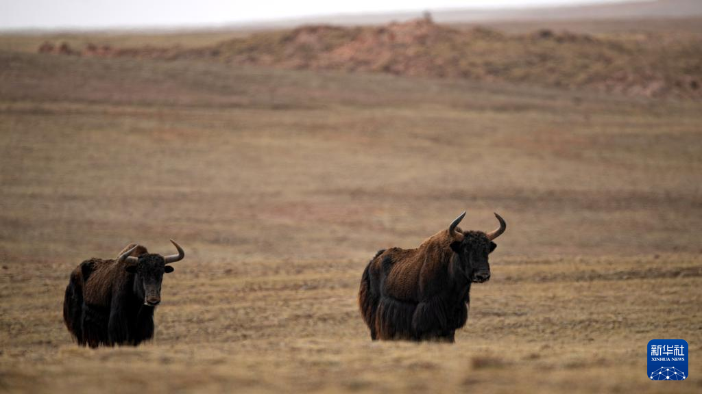 兩頭野牦牛在可可西里卓乃湖區(qū)域活動(dòng)(6月18日攝)。新華社發(fā) 潘彬彬 攝