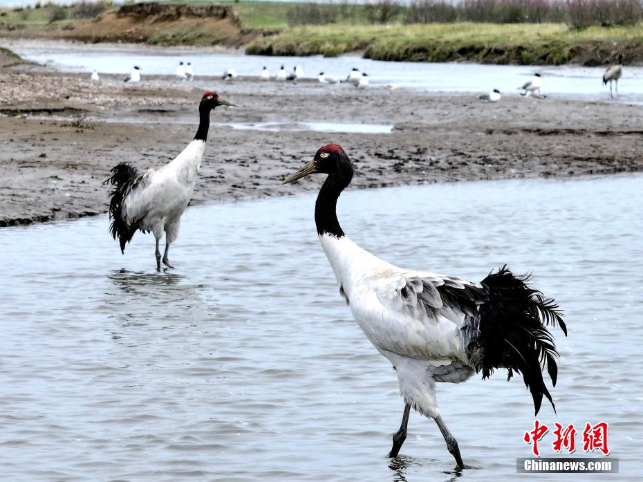 圖為青海湖入湖河流沙柳河的黑頸鶴。包雷 攝