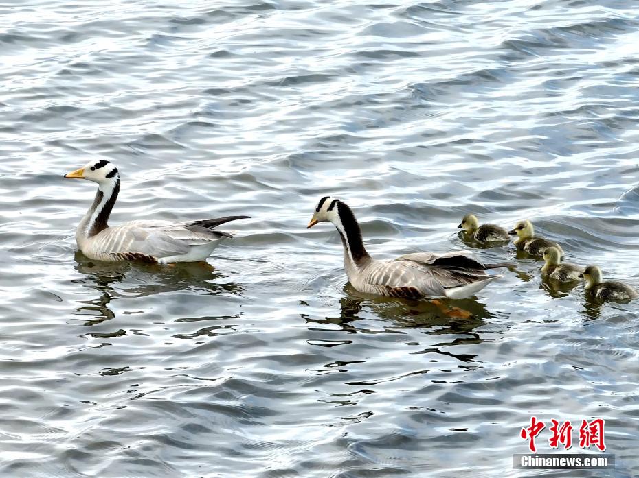 圖為斑頭雁“攜家?guī)Э凇彼杏芜?。包?攝