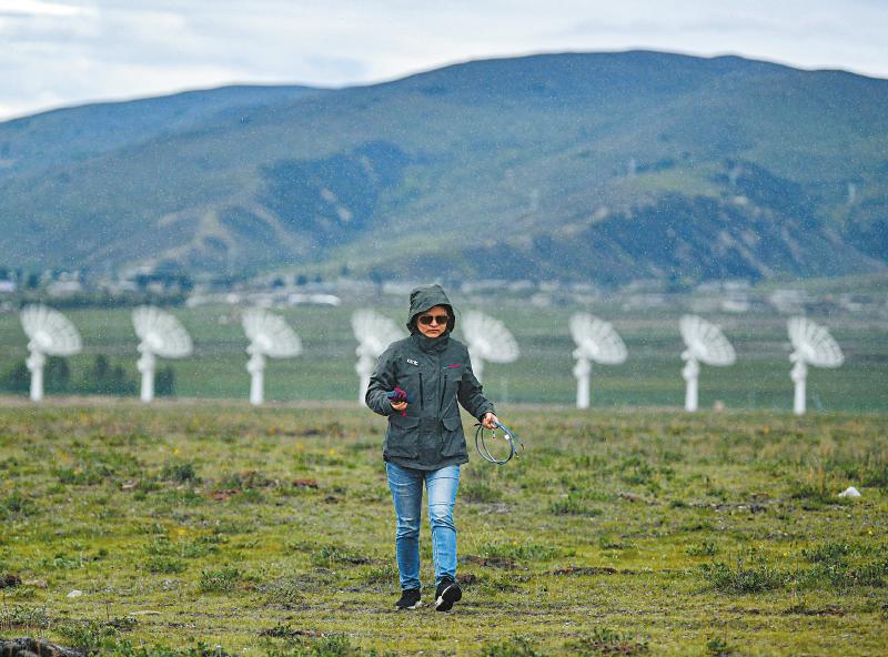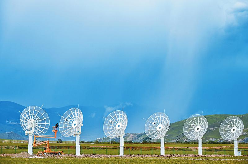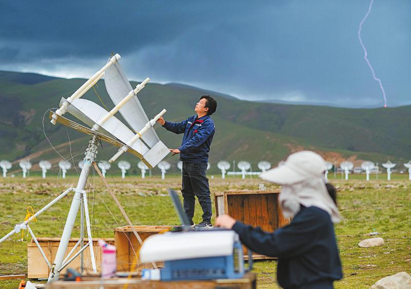 7月8日,四川省甘孜州稻城縣噶通鎮(zhèn)天氣說變就變。在國家重大科技基礎(chǔ)設(shè)施——空間環(huán)境地基綜合監(jiān)測(cè)網(wǎng)(子午工程二期)圓環(huán)陣太陽射電成像望遠(yuǎn)鏡項(xiàng)目建設(shè)現(xiàn)場(chǎng),中國電科第39研究所現(xiàn)場(chǎng)施工負(fù)責(zé)人葉愛林和同事正在進(jìn)行天線增益調(diào)試實(shí)驗(yàn)。突然,一道閃電劃過天際,轟隆隆的雷聲過后便是傾盆大雨,葉愛林和同事不得不停下手中正在進(jìn)行的實(shí)驗(yàn),臨時(shí)找地方躲雨?!斑@雨下不了多久,等雨停了,我們?cè)倮^續(xù)。”在項(xiàng)目建設(shè)現(xiàn)場(chǎng)已工作了480多天的他,被同事們稱作半個(gè)氣象“土專家”。他不僅能“察言觀色”看懂高原上的云彩,還能大差不差地推測(cè)出天氣變化。在海拔3800多米的噶通鎮(zhèn),許多科研人員像葉愛林一樣,默默奮戰(zhàn),希望在建的這一國家重大科技基礎(chǔ)設(shè)施能早日運(yùn)行,為中國空間科學(xué)事業(yè)的發(fā)展提供關(guān)鍵性的探索幫助及技術(shù)支持,使我國步入世界空間科學(xué)領(lǐng)域的先進(jìn)行列。