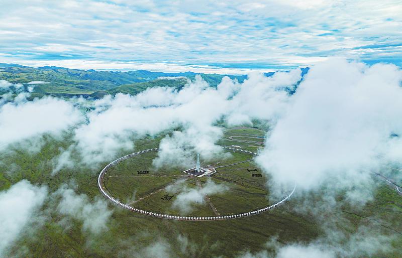 7月8日,晨霧下的圓環(huán)陣太陽射電成像望遠(yuǎn)鏡項(xiàng)目狀如一顆巨大的“千眼天珠”。