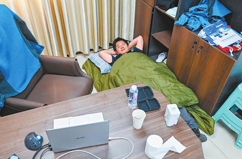7月8日中午,子午工程二期圓環(huán)陣太陽射電成像望遠(yuǎn)鏡項(xiàng)目副主任設(shè)計(jì)師武林抓緊時(shí)間在辦公室午休。