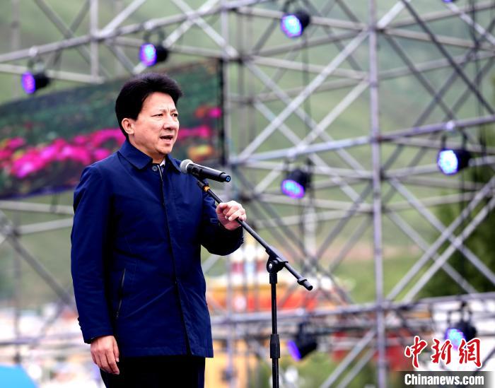 圖為中共玉樹州委書記蔡成勇致辭。薛蒂 攝