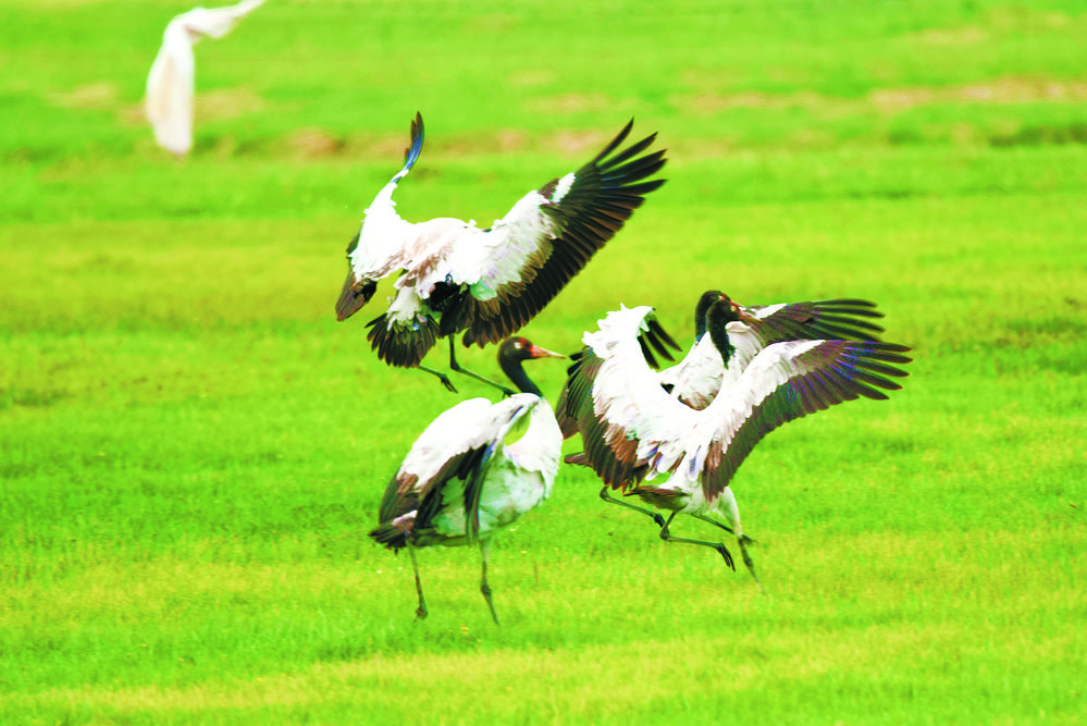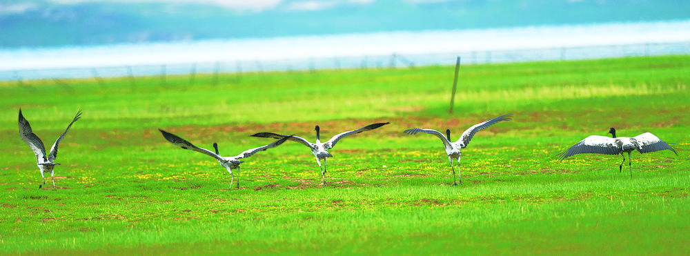 人鶴共生:濕地大省青海多措并舉引來黑頸鶴翔集