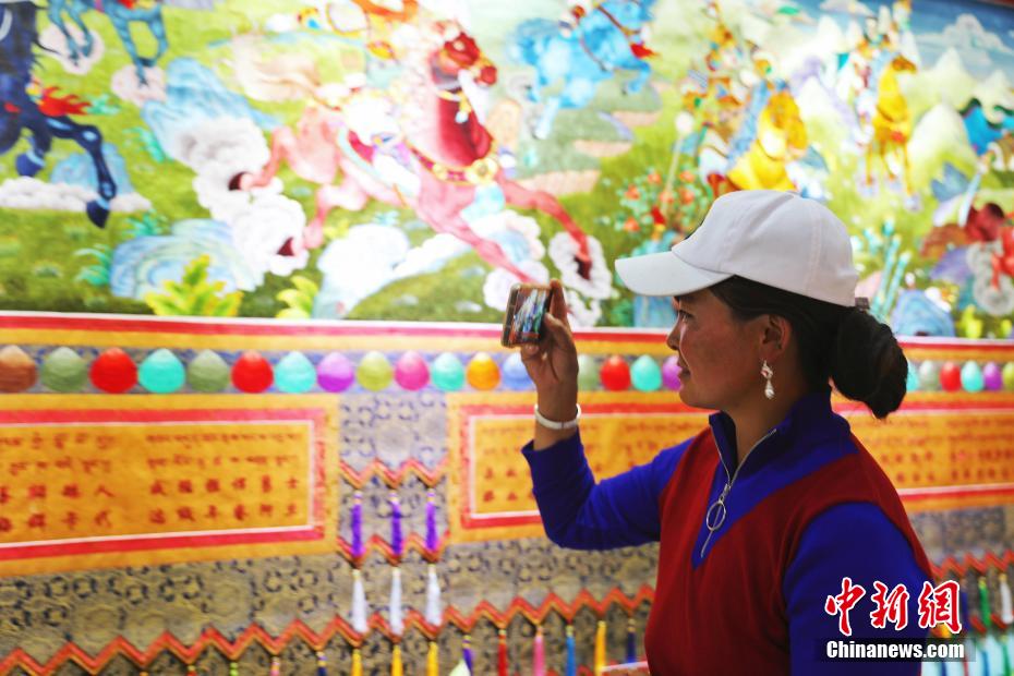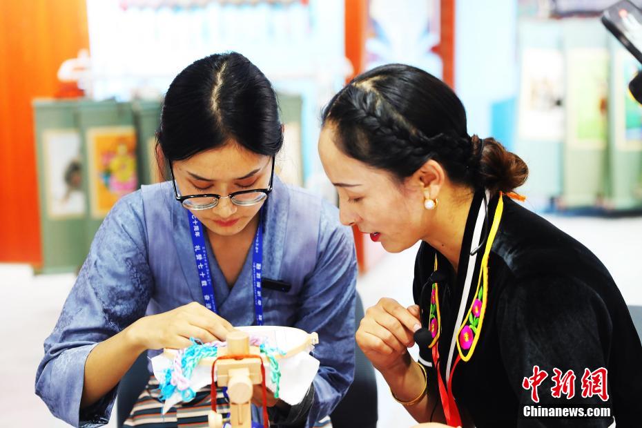 圖為游客體驗(yàn)藏繡藝術(shù)。薛蒂 攝