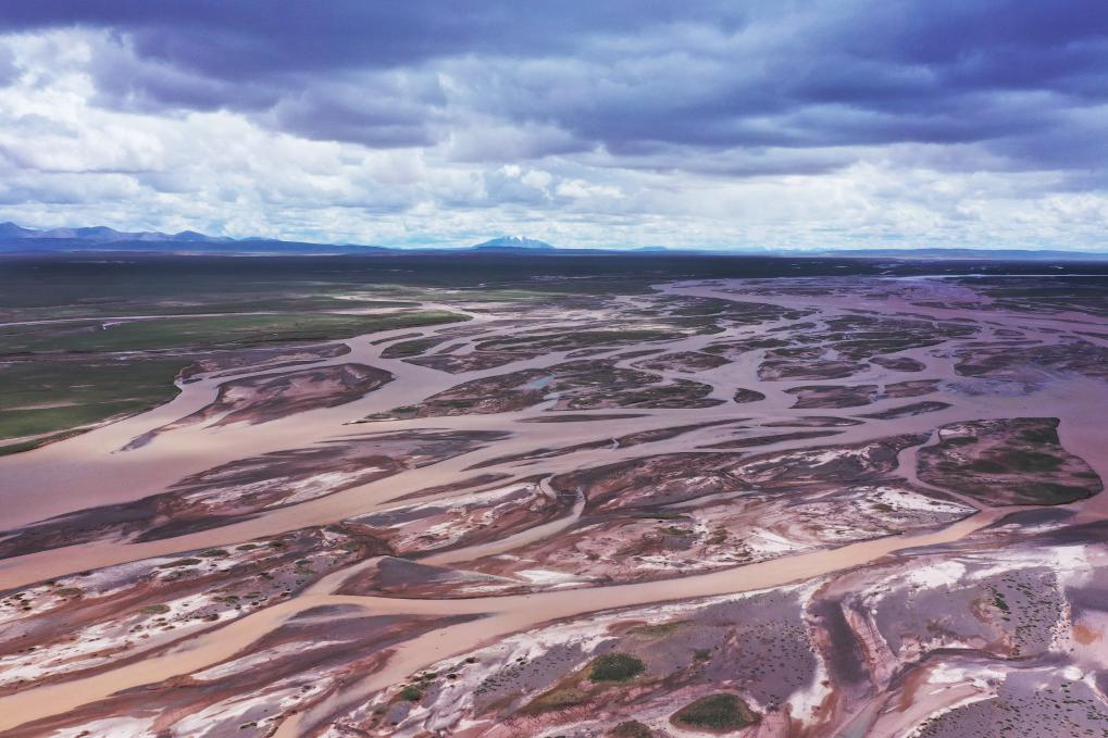 這是2023年7月26日拍攝的囊極巴隴河道,長(zhǎng)江正源沱沱河和南源當(dāng)曲在此匯合(無人機(jī)照片)。新華社記者 陳杰 攝