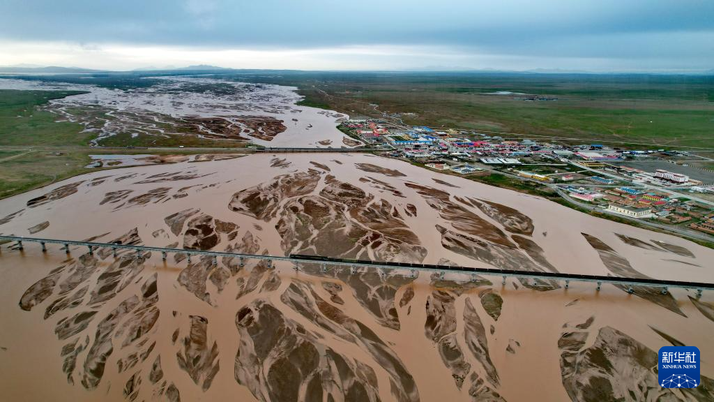 記者看到,在沱沱河與當(dāng)曲匯合處的囊極巴隴,匯合后河流水量增大,辮狀河道寬度超過(guò)3千米。青藏鐵路楚瑪爾河大橋之下的楚瑪爾河,暗紅色的河水宛如大地的血管系統(tǒng),流淌在寬闊的辮狀河道里。
