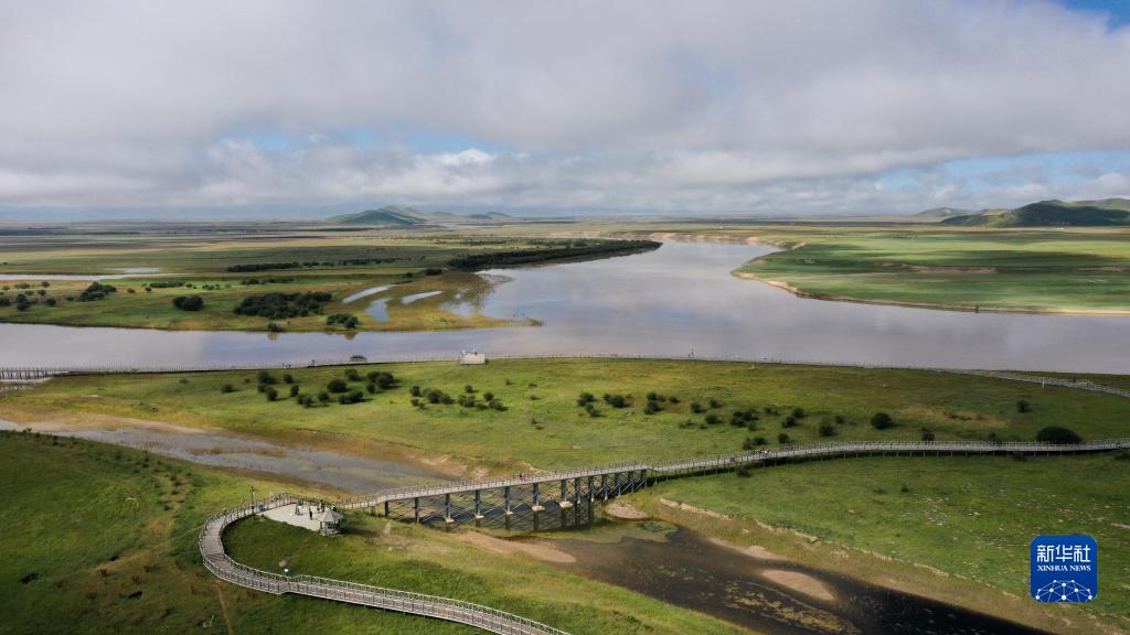 這是8月22日在四川省阿壩藏族羌族自治州若爾蓋縣唐克鎮(zhèn)拍攝的黃河九曲第一灣景色(無人機照片)。新華社記者 王乙杰 攝