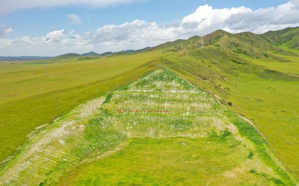 這是在四川省阿壩藏族羌族自治州若爾蓋縣達扎寺鎮(zhèn)多瑪村廢棄礦山治理點拍攝的“椰絲毯”。新華社記者 王曦 攝