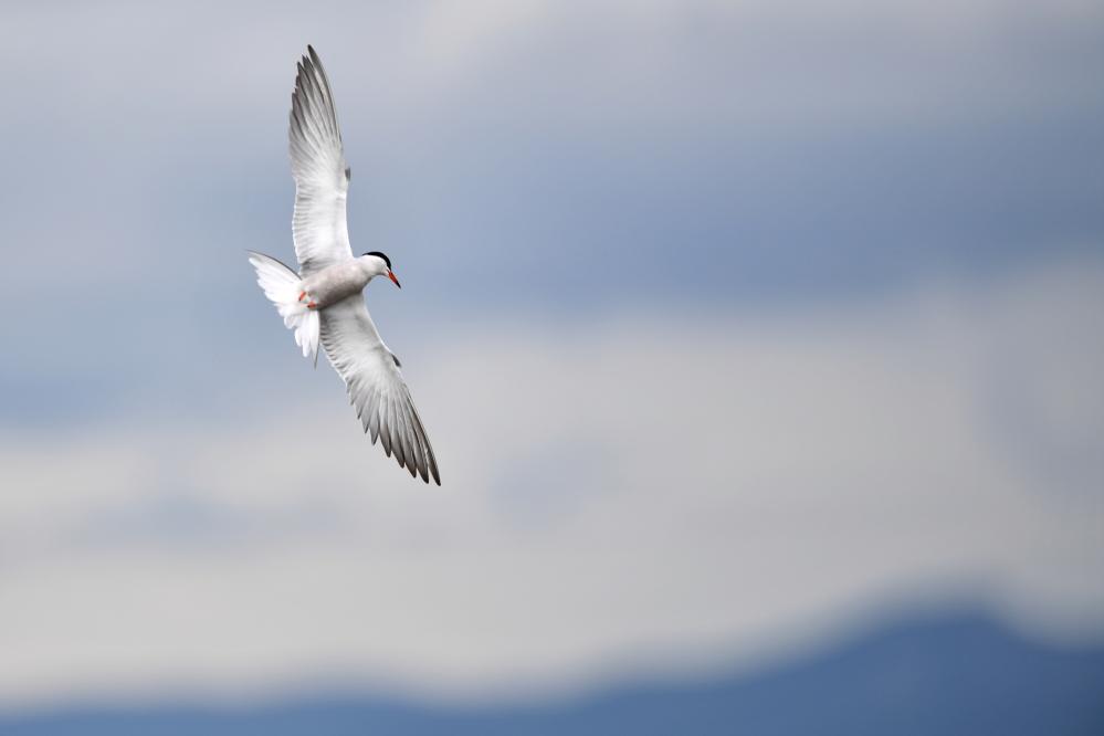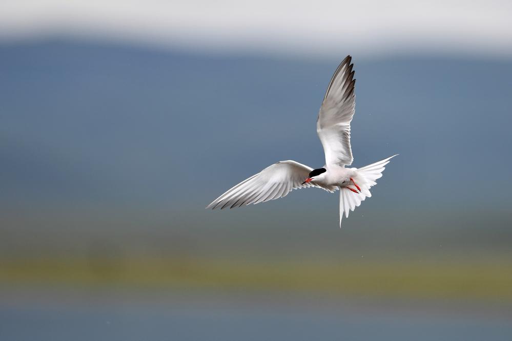 一只燕鷗在甘肅尕海則岔國(guó)家級(jí)自然保護(hù)區(qū)的尕海濕地上飛翔。 新華社記者 陳斌 攝