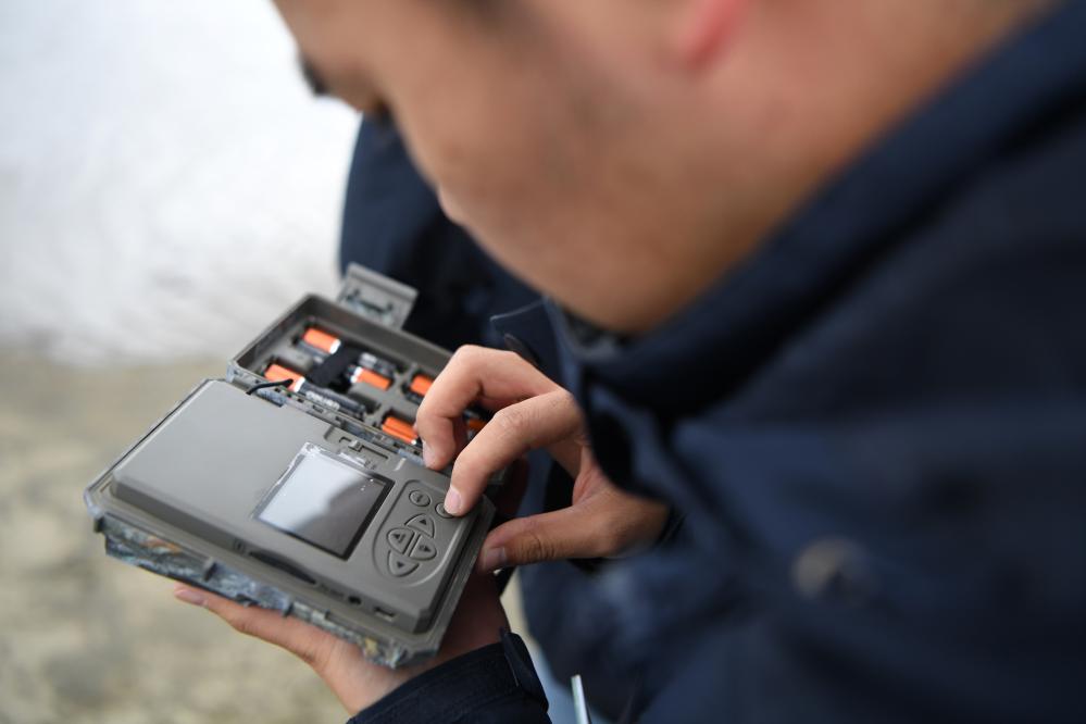 甘肅黃河首曲國(guó)家級(jí)自然保護(hù)區(qū)管護(hù)中心曼日瑪保護(hù)站的工作人員在保護(hù)區(qū)內(nèi)檢查紅外相機(jī)的工作情況。 新華社記者 方欣 攝