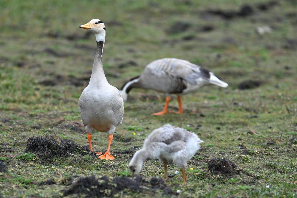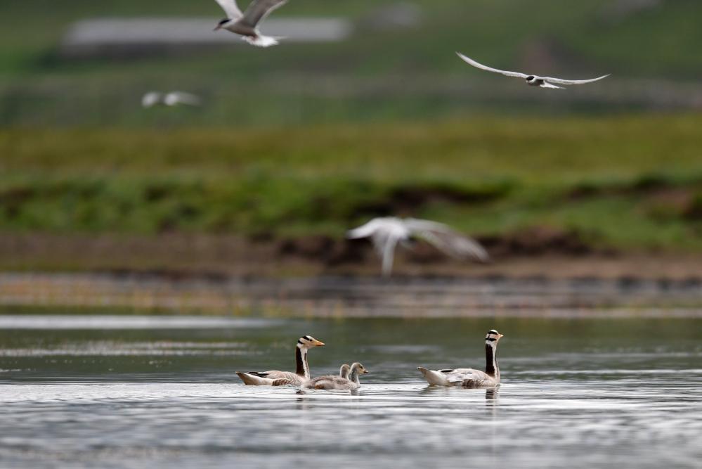 這是在甘肅尕海則岔國(guó)家級(jí)自然保護(hù)區(qū)的尕海濕地上拍攝的斑頭雁。 新華社記者 張可任 攝