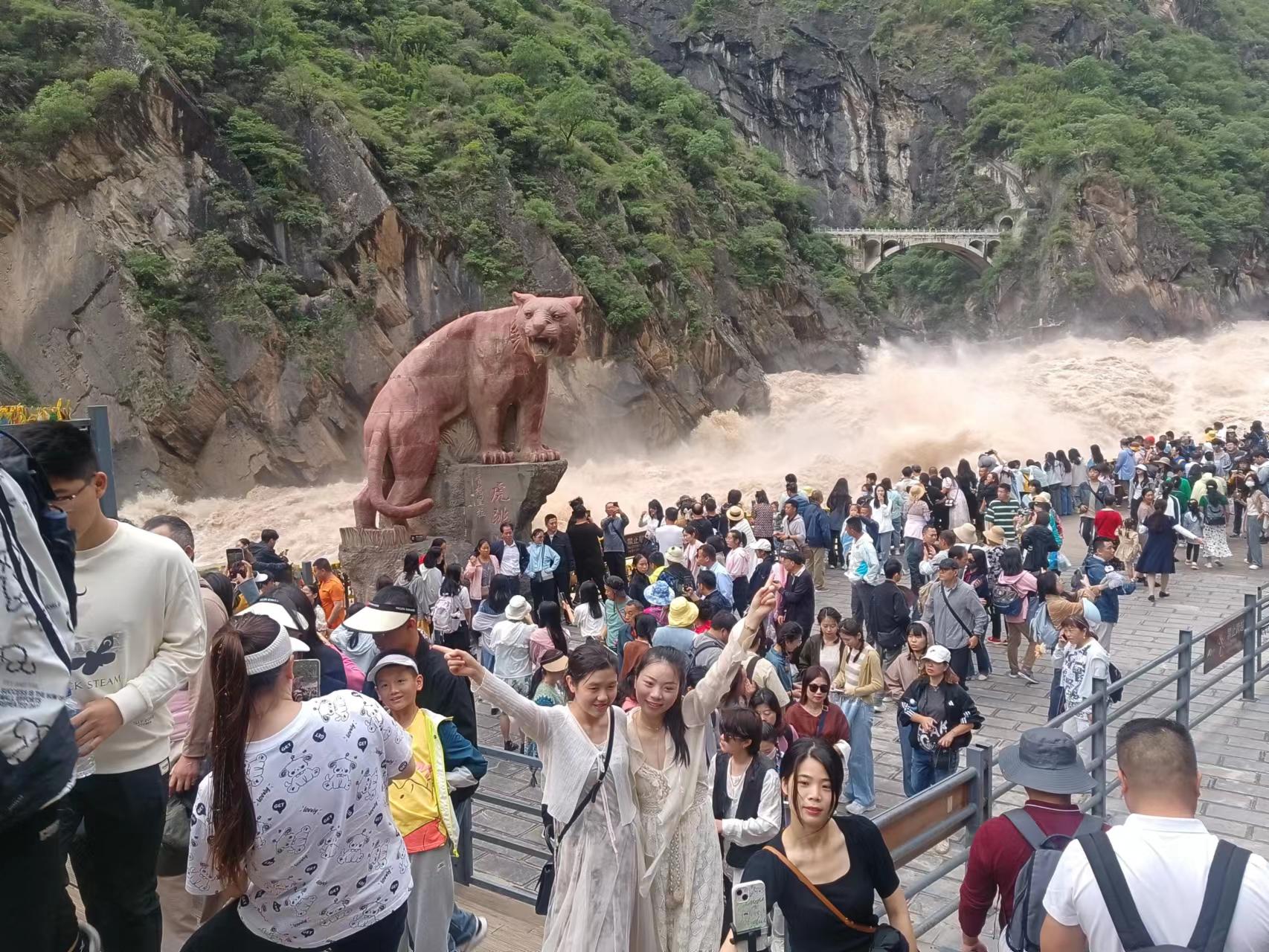 日前,虎跳峽景區(qū)游人爆滿,各項(xiàng)旅游接待指標(biāo)全面提升?!澳壳坝慰腿藬?shù)還在持續(xù)攀升,預(yù)計(jì)國慶節(jié)中期到達(dá)頂峰?!本皡^(qū)工作人員介紹道。假期前三天景區(qū)已接待游客3.11萬人。