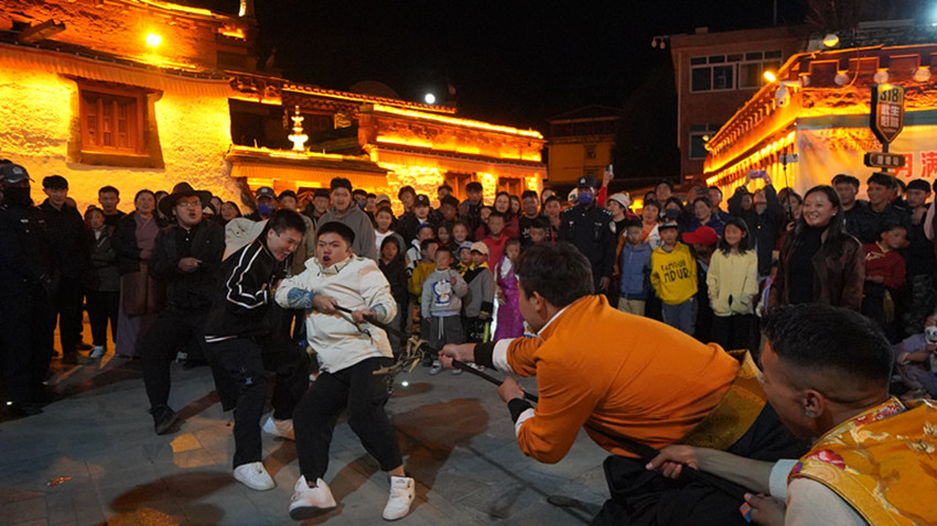 “江流宛轉繞芳甸,月照花林皆似霰……”農(nóng)歷八月十五,月色籠罩下的勒通古鎮(zhèn)·千戶藏寨,流淌著中華詩歌的悠悠古韻。9月29日晚,“我們的節(jié)日·中秋”新時代文明實踐系列活動之“月滿理塘、愛我中華”文藝展演,引得群眾和游客爭相拍照。藏戲舞蹈“扎西雪巴”、藏族踢踏舞讓觀眾領略到濃郁的民族風情,詩朗誦伴舞《我愛你,中國》引人入勝……一場場精彩演出展現(xiàn)了傳統(tǒng)文化的多重魅力。