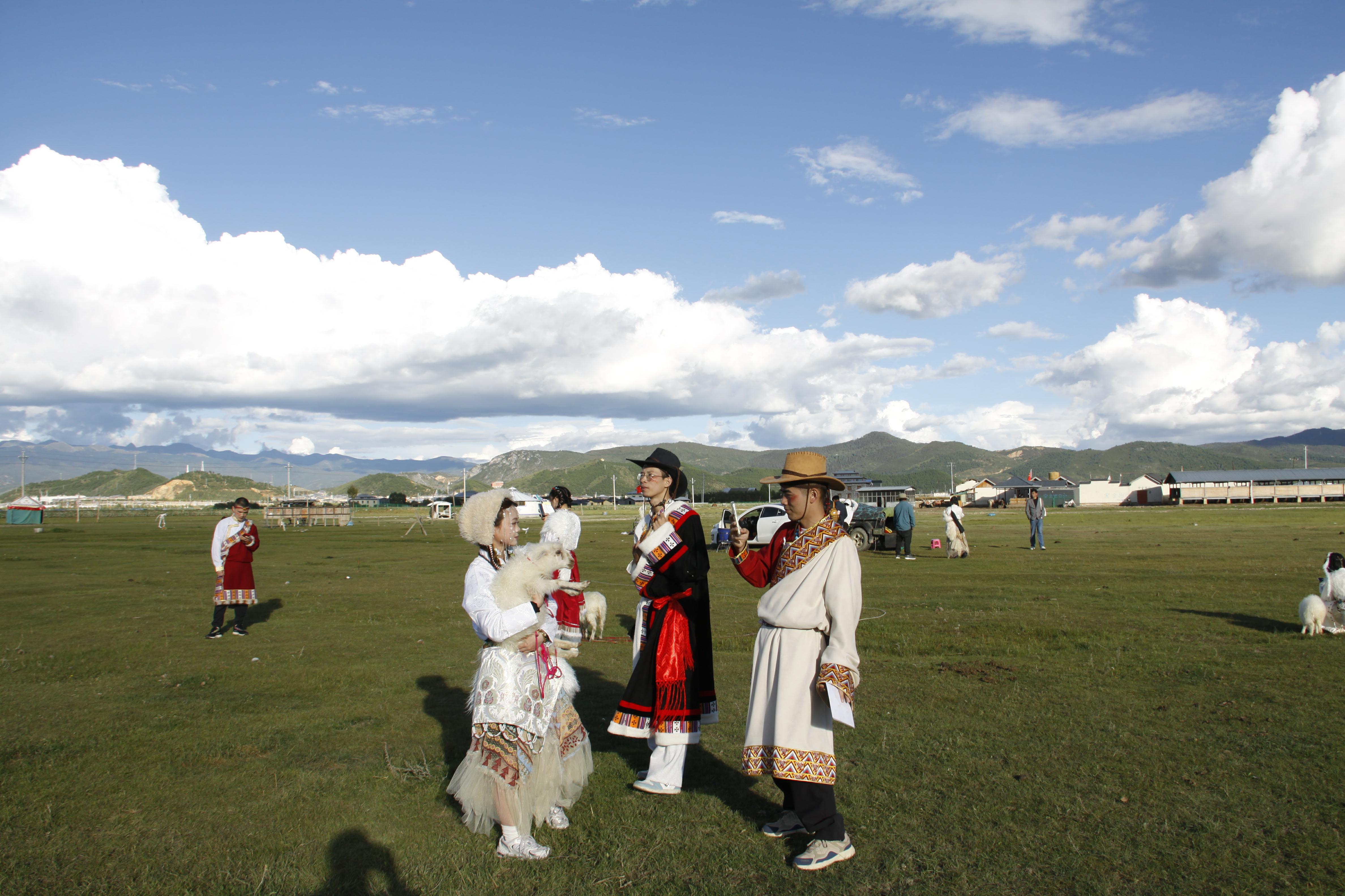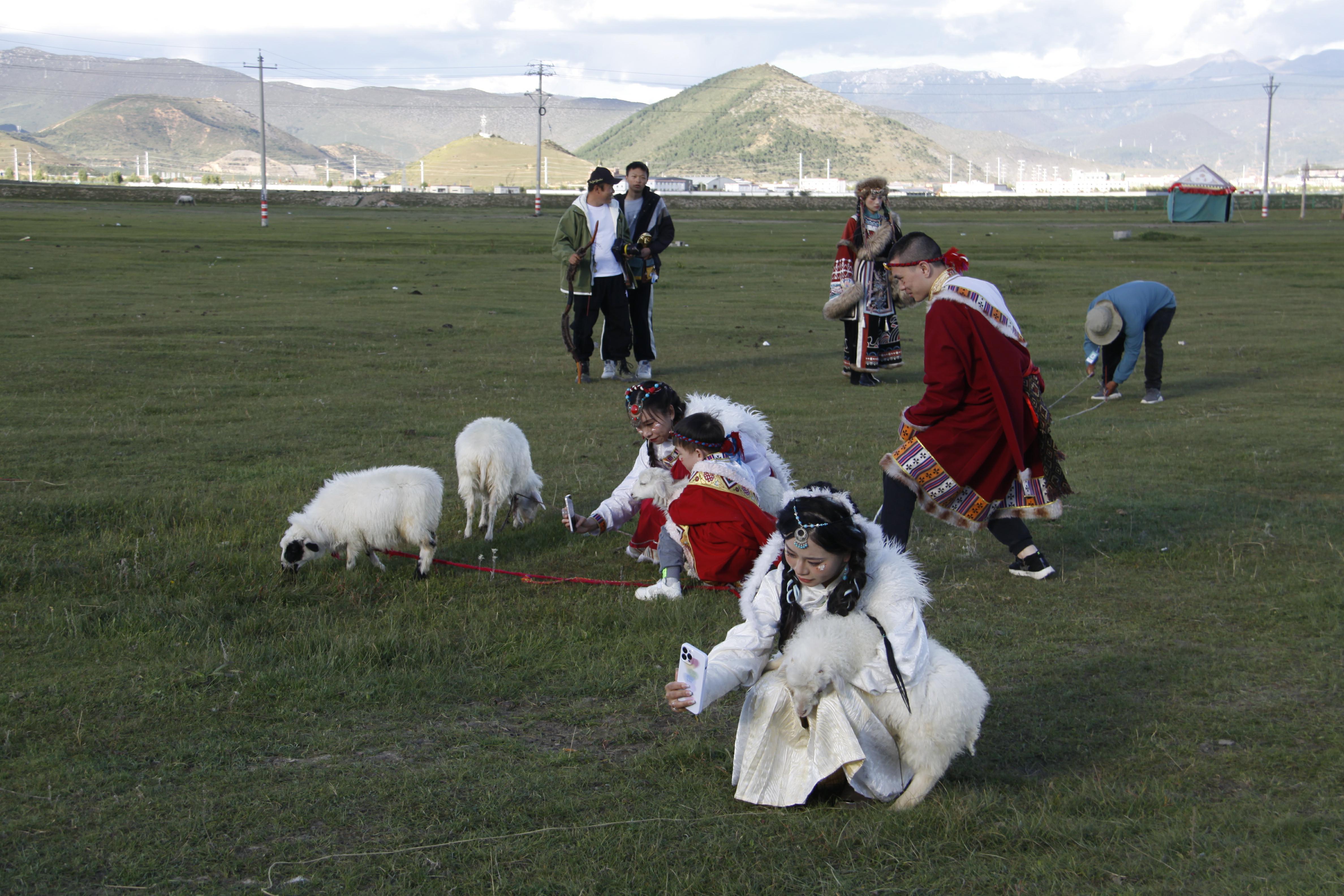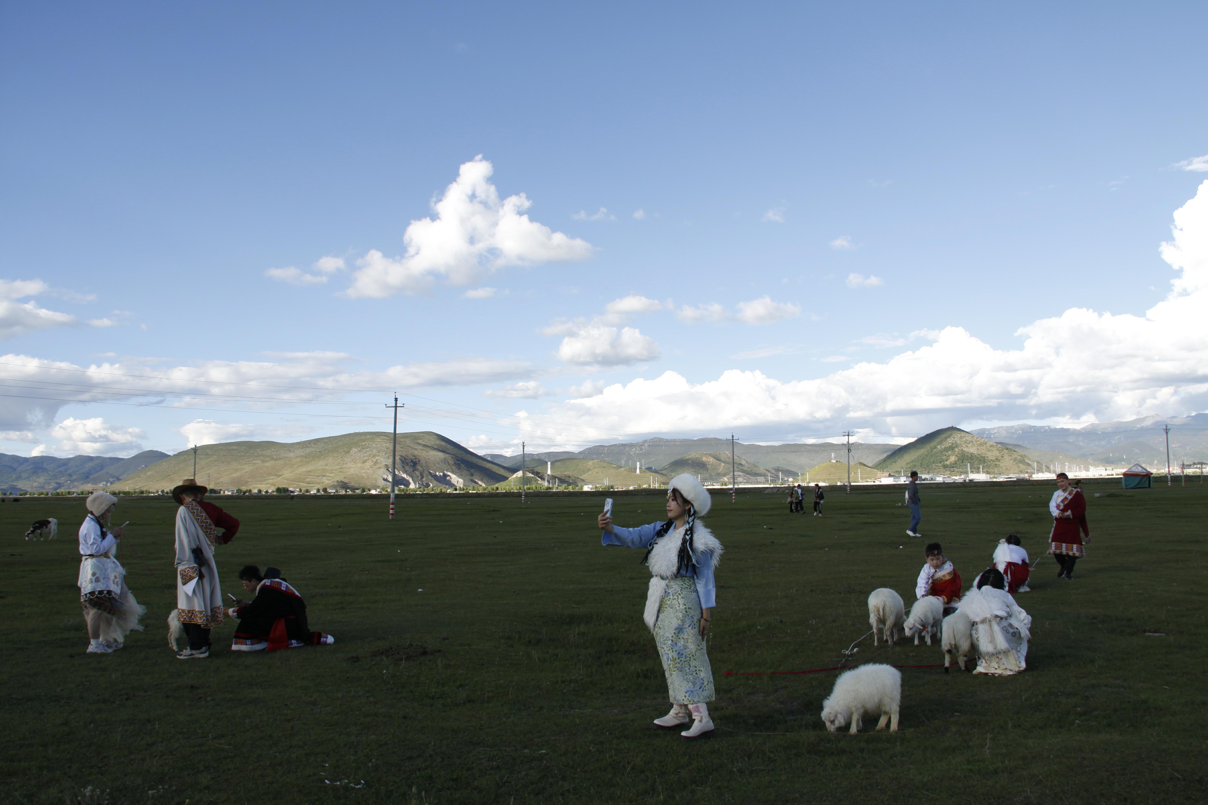時(shí)下,迪慶高原秋景如畫。眾多游客紛紛到香格里拉市建塘草原打卡,在藍(lán)天白云下,有的騎馬賞景,有的身著民族服裝旅拍,還有的與小綿羊親密接觸,構(gòu)成了一道道亮麗的風(fēng)景線。