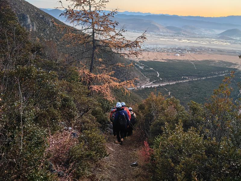 11月的香格里拉市城郊,夜間溫度已達(dá)零下10攝氏度。面對緊急情況,香格里拉消防站高海拔專業(yè)救援隊立即派出2車10人,攜帶專業(yè)救援裝備與補(bǔ)給物資出發(fā)救援。根據(jù)報警人提供的經(jīng)緯度定位信息,消防救援人員利用北斗衛(wèi)星終端不斷修正方向進(jìn)行搜救。行進(jìn)途中,山勢陡峭,草木叢生,夜間山上氣溫驟降,可見度低……種種不利因素,給搜救工作帶來極大挑戰(zhàn)。至14日凌晨3點20分,搜索半徑接近5公里,海拔上升到4300米?!坝腥藛幔坑腥藛??”救援人員一邊喊著,一邊向石卡雪山深處搜索。“我們在這!我們在這!”消防救援人員在黑暗中聽到有人呼喊,立即順著聲音方向?qū)ふ疫^去。