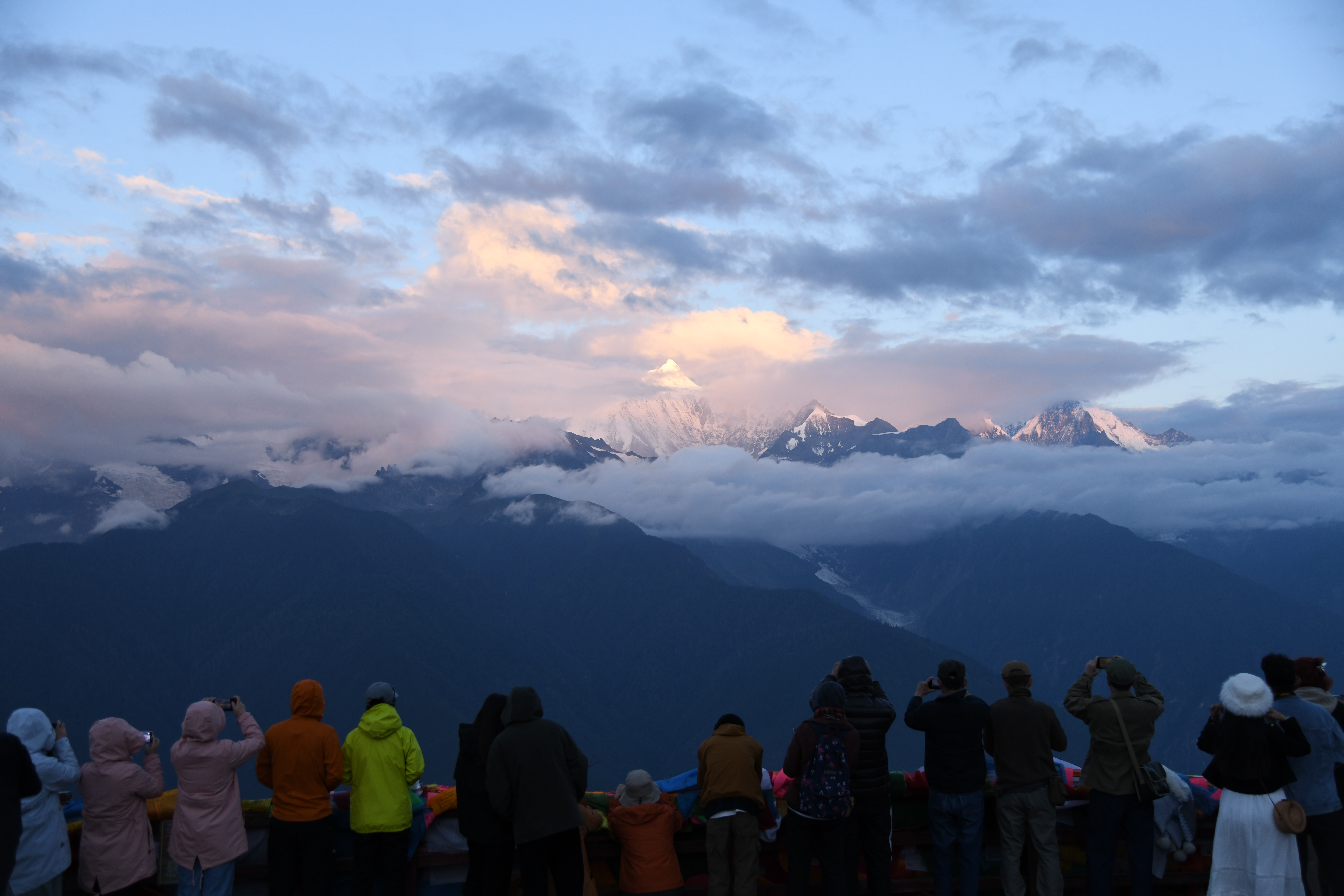 入秋以來,秋風撩開縈繞在梅里雪山周圍的云霧,也迎來了觀賞“日照金山”的最佳時節(jié)。每天清晨6點左右,大批游客就開始蹲守,只為一睹梅里雪山“日照金山”的奇觀。[詳細]