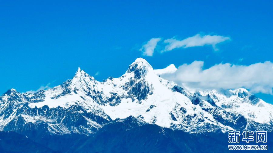 近日,攝影師在德欽縣記錄下卡瓦格博峰美景,高聳的峰頂被白雪覆蓋,與背后的藍天白云相映,盡顯蒼茫壯觀之美。