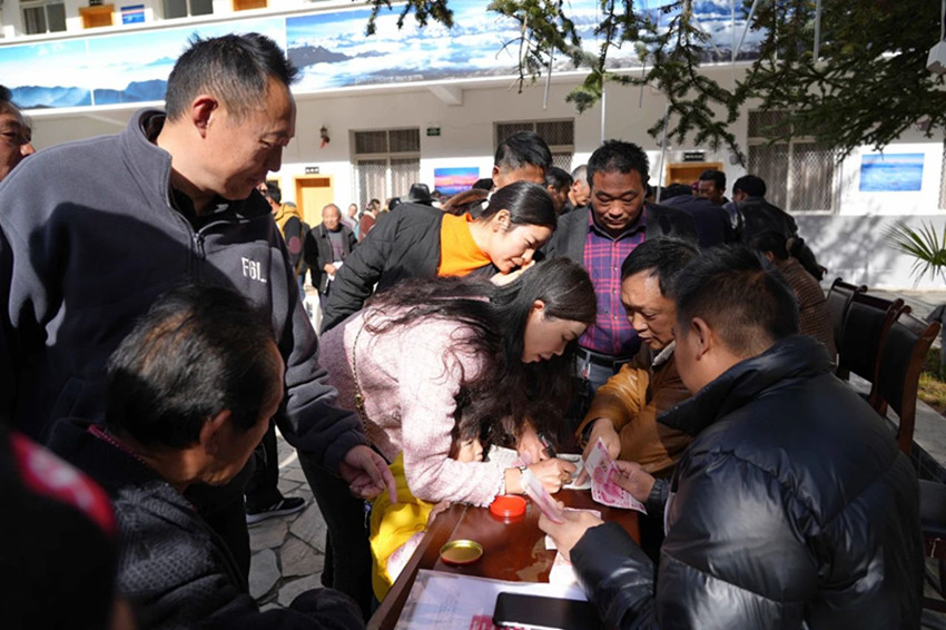 圖為村民領(lǐng)取分紅。