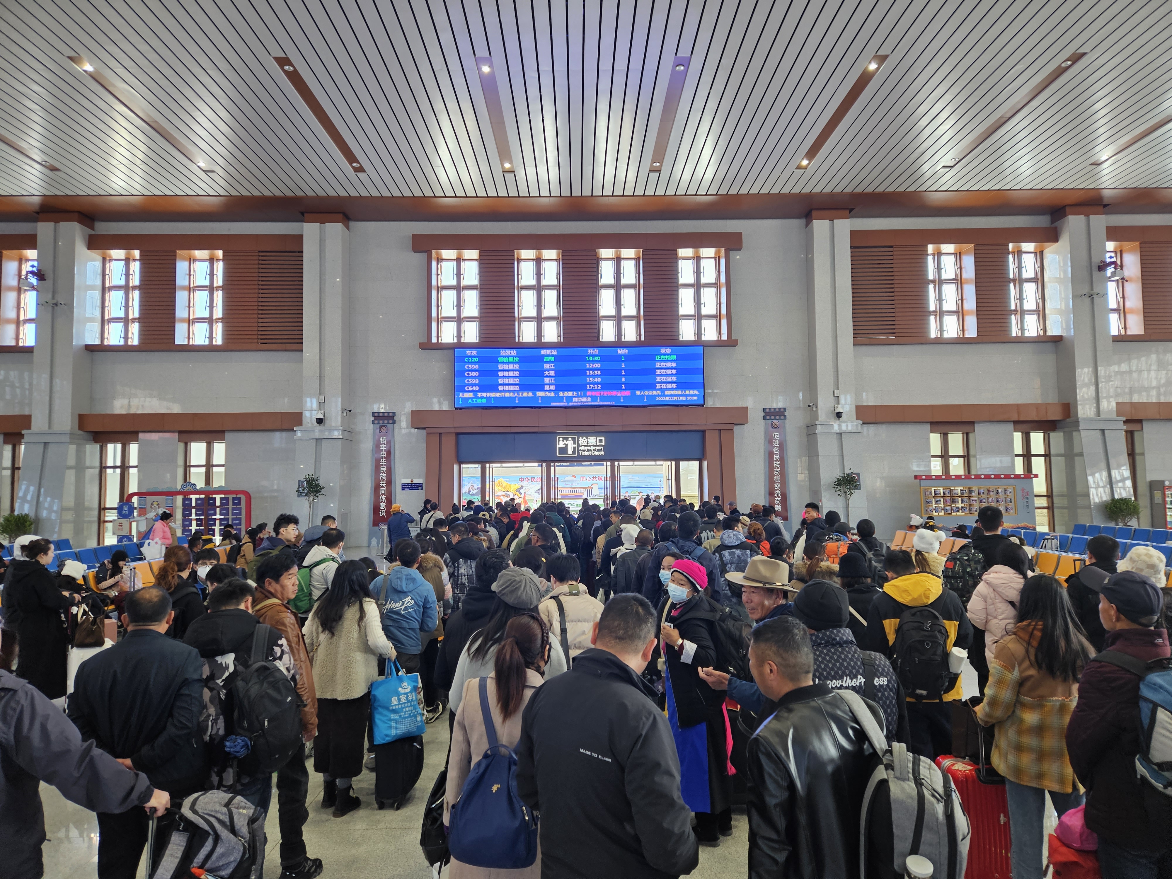 香格里拉站客運員黃浩芯告訴記者,近期香格里拉站客流量維持在發(fā)送2200人左右,到達2100人左右,上座率平均在60%,客票比較充足,廣大旅客可以通過鐵路12306的網(wǎng)站、手機APP代售點、售票窗口以及自助售票機進行購票。針對香格里拉站客流持續(xù)上升情況,香格里拉站在安檢方面,由原來的六個人增派到八個人,售票窗口由原來的一個窗口增加至兩個窗口,同時,每天會安排一些預備人員提供服務,全力保障旅客的出行,讓旅客有更好的乘車體驗。