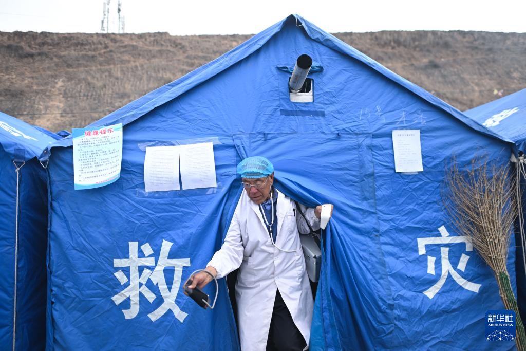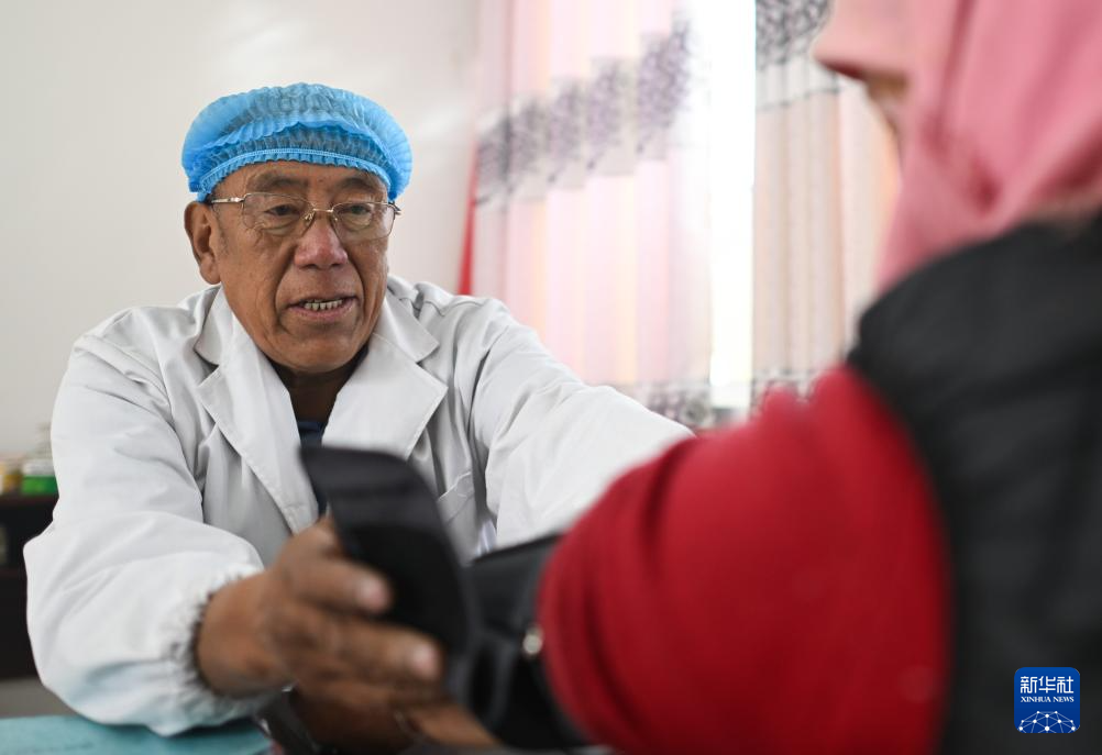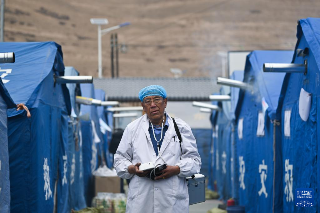 積石山6.2級(jí)地震發(fā)生后,青海省海東市循化撒拉族自治縣道幃藏族鄉(xiāng)牙木村部分房屋出現(xiàn)損毀,當(dāng)?shù)卣谝粫r(shí)間在牙木村建設(shè)安置點(diǎn)。因?yàn)槟贻p時(shí)就讀于衛(wèi)生學(xué)校、掌握基本的醫(yī)療技能,60歲的完么仁增成為安置點(diǎn)的義務(wù)衛(wèi)生員,為村民量血壓并普及健康知識(shí)?!拔蚁胱鲂┝λ芗暗氖聨椭l(xiāng)親們。”完么仁增說(shuō)。
