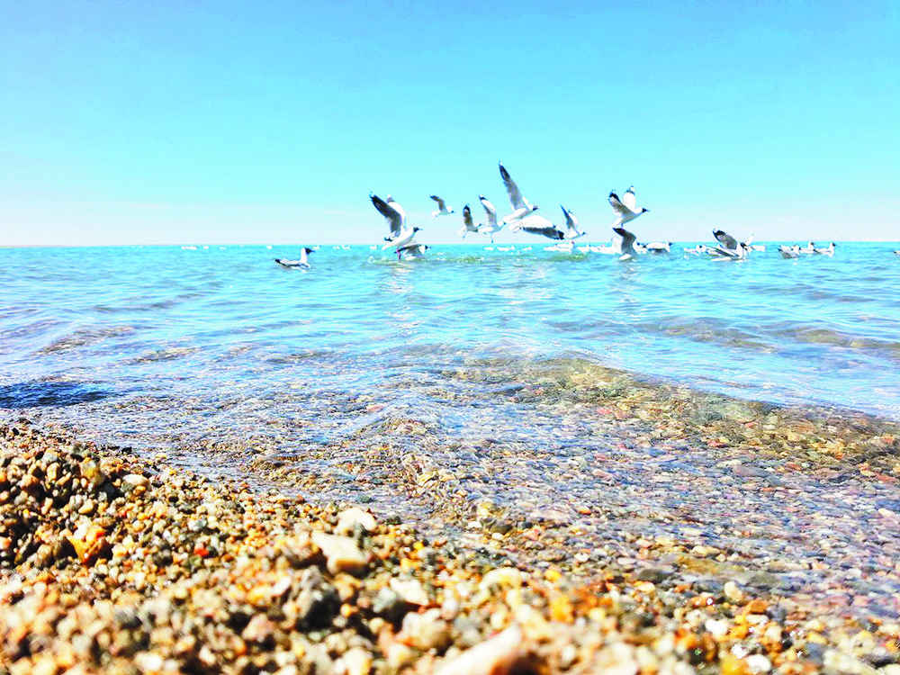 初冬時(shí)節(jié)的青海湖,寧靜內(nèi)斂,水波浩渺,飛鳥翔集,景色如畫。
