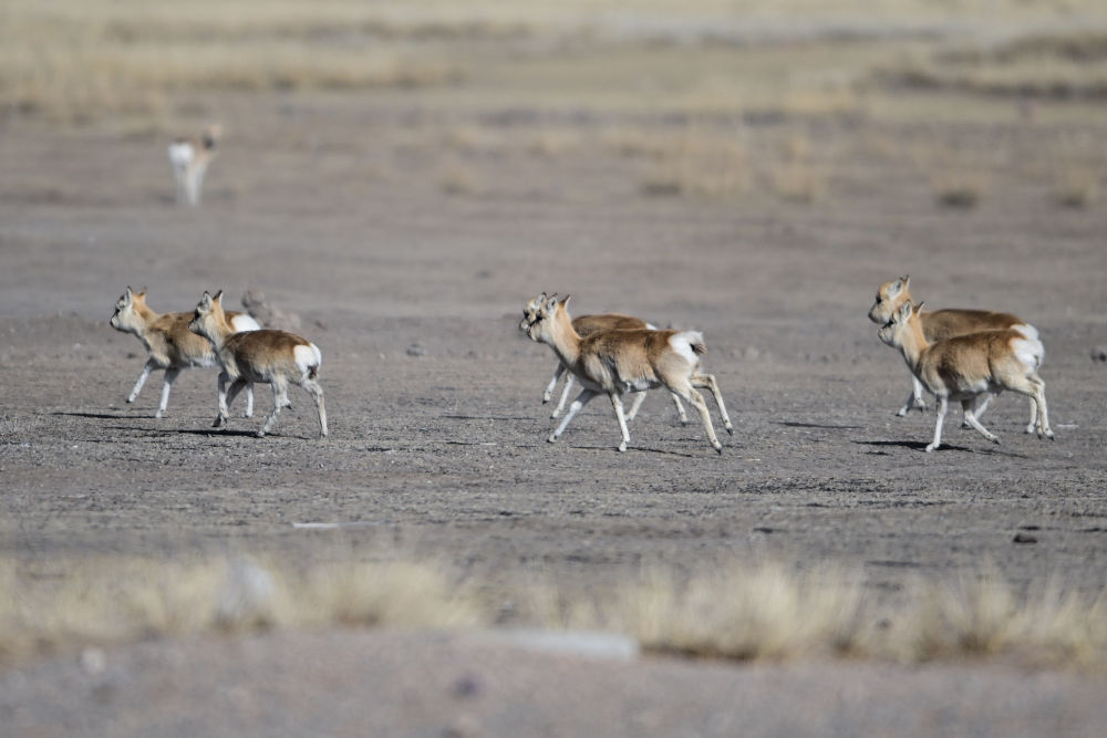 這是1月24日在青海省海北藏族自治州剛察縣哈爾蓋鎮(zhèn)境內(nèi)的草原上拍攝的普氏原羚。新華社記者 耿輝凰 攝