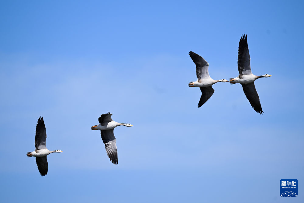 這是4月11日在青海湖拍攝的斑頭雁。新華社記者 張龍 攝
