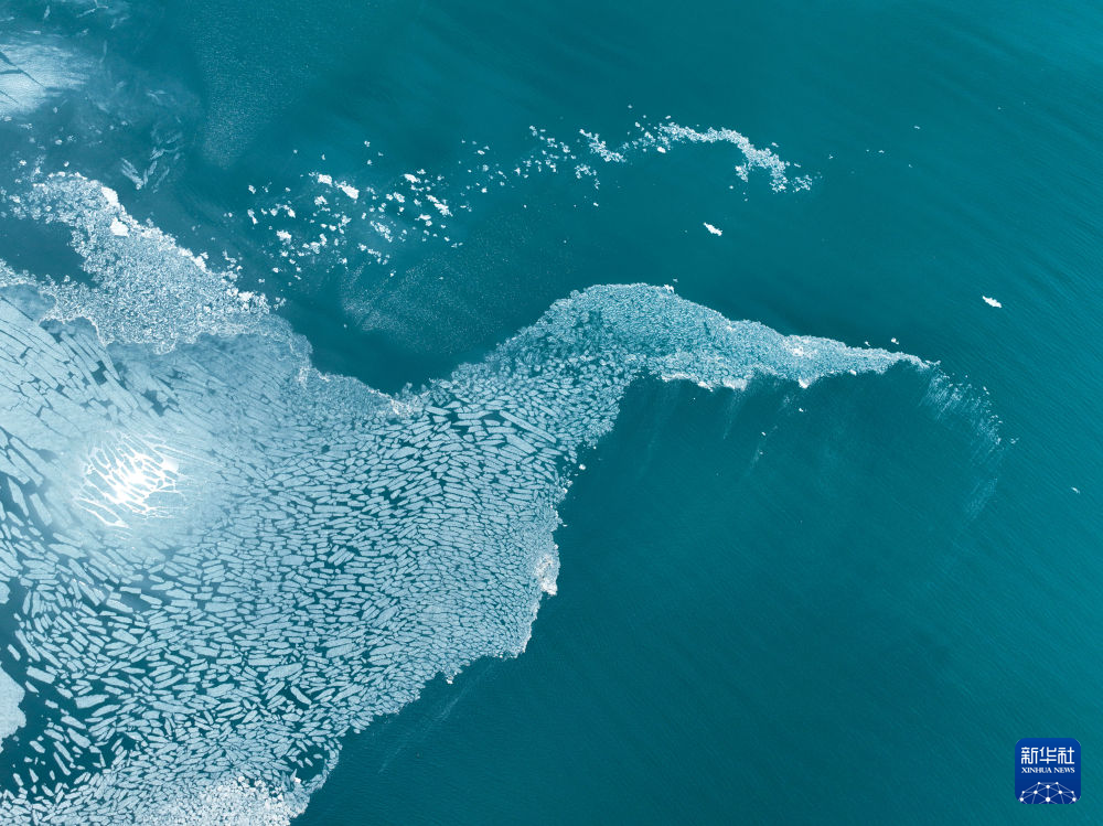 這是4月11日在青海湖拍攝的未融化的湖冰(無(wú)人機(jī)照片)。新華社記者 張龍 攝