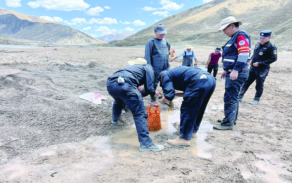洛松才仁在巡視中發(fā)現(xiàn)了該情況,及時拍照將情況反映到巡護(hù)員微信群,玉樹市長江禁捕辦立即組織市公安局、市農(nóng)牧和科技局、市農(nóng)牧綜合行政執(zhí)法大隊組成聯(lián)合執(zhí)法巡查組,洛松才仁和另外一個巡護(hù)員叫上附近的農(nóng)牧民,大家借助防曬網(wǎng)、水桶等一切能利用的設(shè)備,從水溝中撈出約600尾擱淺的魚,把它們放歸到了通天河內(nèi)。