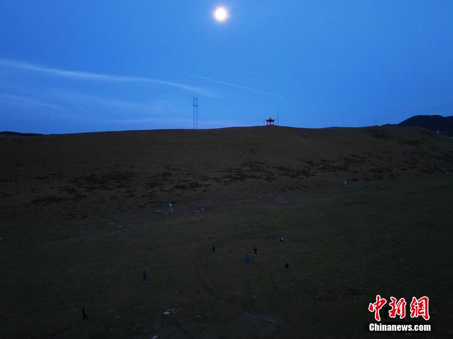 10月15日晚,在甘肅省甘南藏族自治州合作市一牧場內(nèi),甘南九二聯(lián)隊足球隊員在月下訓(xùn)練。該隊隊員因為都在不同地方工作,所以長期自我尋找草場、牧區(qū)等近場地訓(xùn)練,高原草場是他們訓(xùn)練的一大優(yōu)勢。