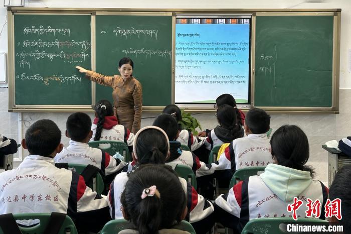 近日,色達縣中學東校區(qū),學生們在上藏文課。中新社記者 王鵬 攝