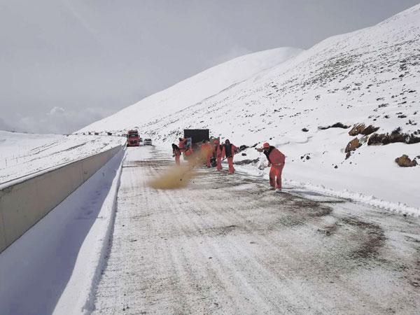 3月20日,記者從自治區(qū)公路局了解到,受低氣溫、強(qiáng)降雪影響,目前,國道318線K4166+000至K4203+000色季拉山段,K4378+000至K4492+000米拉山段路面積雪結(jié)冰較往年嚴(yán)重,局部路段積雪厚度達(dá)40cm以上。為確保公路安全暢通,林芝公路分局立即啟動(dòng)搶險(xiǎn)保通應(yīng)急預(yù)案,組織全體養(yǎng)護(hù)職工上路開展除雪除冰保通工作。針對彎道、陡坡等重點(diǎn)路段,加大機(jī)械和養(yǎng)護(hù)工人的投入力度,加快恢復(fù)道路車輛通行。由于高寒缺氧、交通不便,養(yǎng)護(hù)職工時(shí)常自備干糧充饑。冰雪融化后,養(yǎng)護(hù)工人還要對易結(jié)冰路段加大巡查力度,發(fā)現(xiàn)結(jié)冰路段立即按要求設(shè)置施工作業(yè)標(biāo)志并進(jìn)行打冰作業(yè),及時(shí)消除安全隱患,保證行車安全。