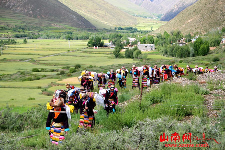 7月14日,西藏山南市瓊結(jié)縣拉玉鄉(xiāng)強吉村村民參加“望果節(jié)”祈福。村民們身著節(jié)日盛裝,轉(zhuǎn)遍農(nóng)田,祈求風(fēng)調(diào)雨順好收成?!巴?jié)”已有1500多年的歷史,是國家級非物質(zhì)文化遺產(chǎn)。藏語“望”意為“田地”,“果”為“轉(zhuǎn)圓圈”,“望果節(jié)”即圍繞田野歌舞慶祝豐收。(倫珠澤仁攝)