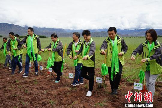 圖為9月3日,奧運冠軍,演員,“綠哈達(dá)行動”公益宣傳大使田亮(右三)在林周縣卡孜鄉(xiāng)草場體驗植草環(huán)節(jié)。 張偉 攝